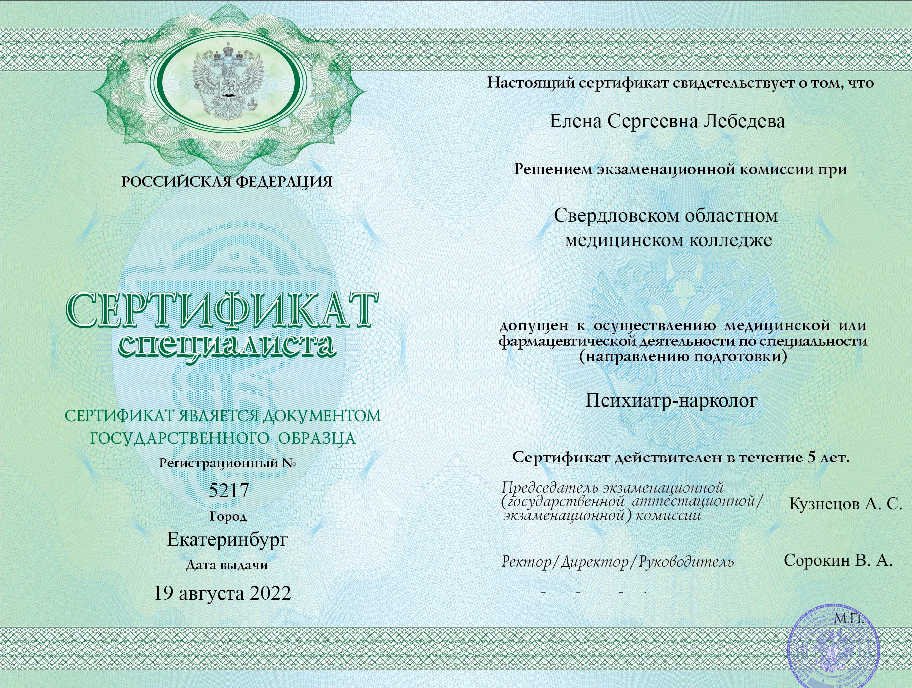 Елена Сергеевна Лебедева врач нарколог клиники доктора Стукаловой в Сунже